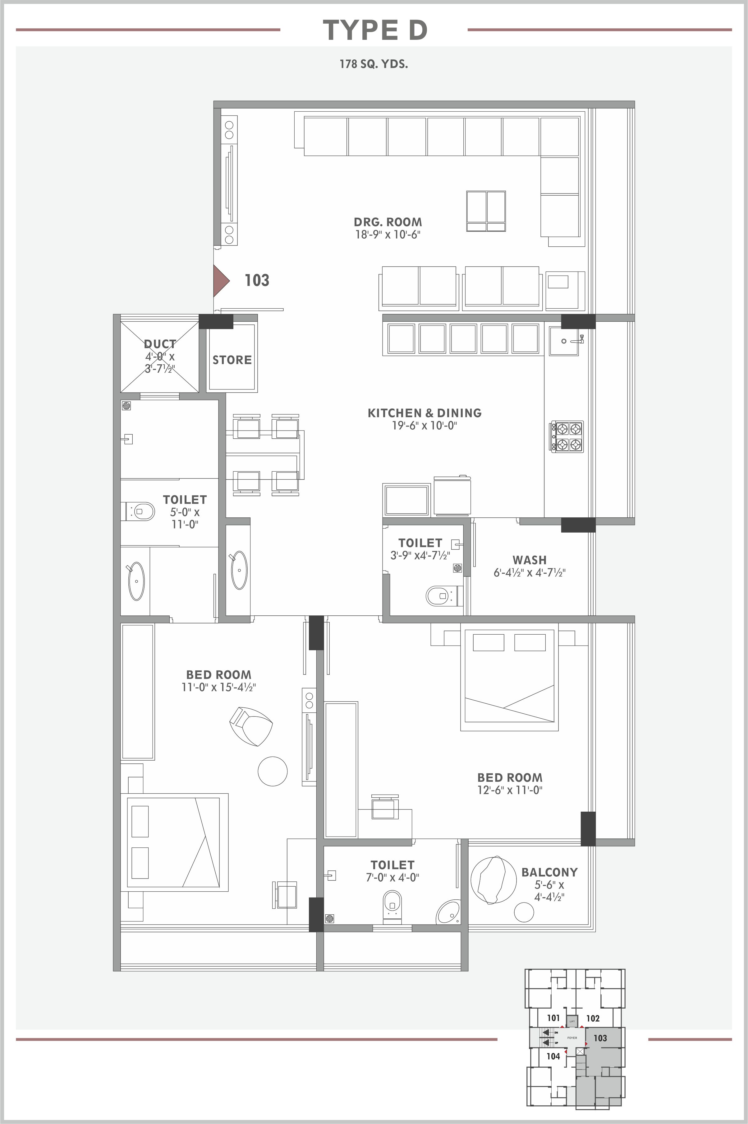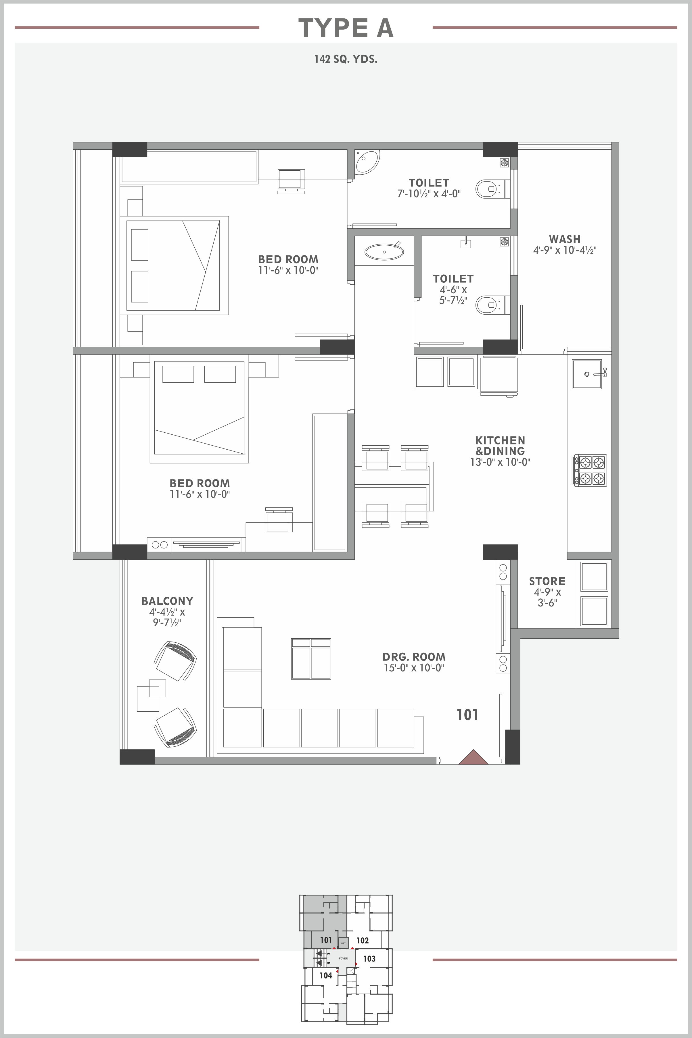 Double Charge Vitrified tiles of standard make in all areas of each flat and common passage.