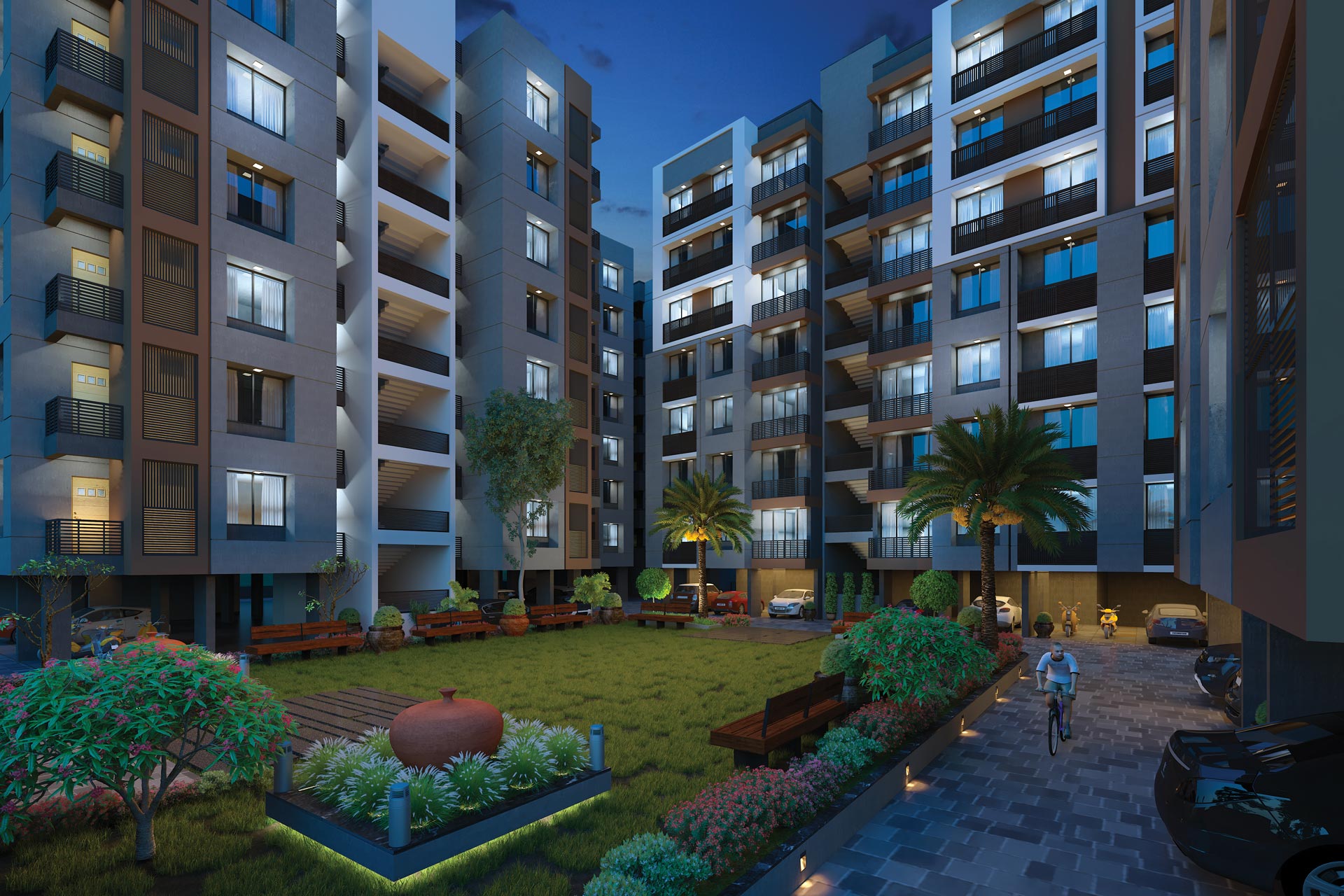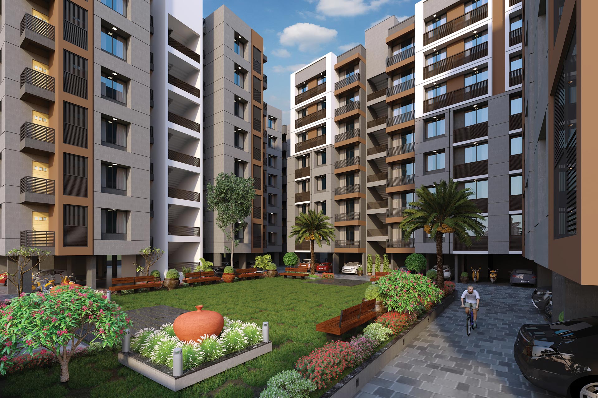 Double Charge Vitrified tiles of standard make in all areas of each flat and common passage.